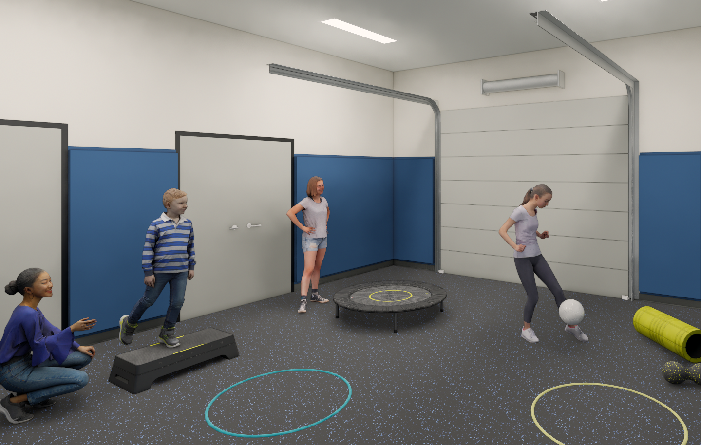 At Allegany-Limestone CSD, tactile walls contribute to a corridor that promotes calm between classes. Similarly, Intensive Treatment classrooms at OLV Human Services will offer sensory-rich gross motor experiences using trampolines, balance tools and tactile zones.