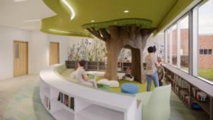 The CIP additionally reinvents libraries to meet emerging needs. At the elementary level, students will enjoy cozy reading zones and a whimsical tree sculpture with twinkling lights, sparking imagination and joy.