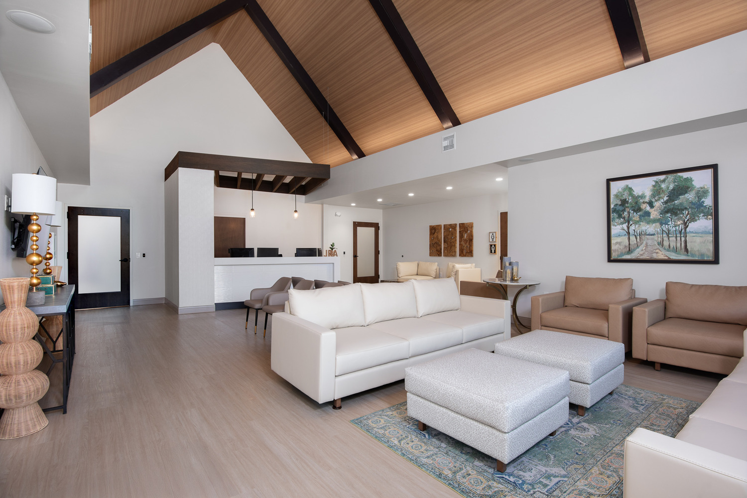 The interior design was equally important, with JRA seeking an inviting “farmhouse chic” aesthetic to set a calming, patient-friendly tone. Warm wood accents, an earthy color palette, and thoughtful use of materials delivered this vision while staying within budget.