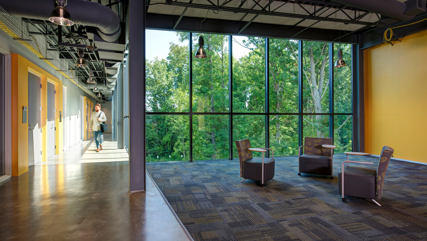 Upper levels offer dedicated R&D labs, flexible incubation areas, classrooms and collaborative office suites. Participants can leverage in-house project management or bring their own trained staff to work safely within the center’s nexus—bridging the gap between concept and commercialization.